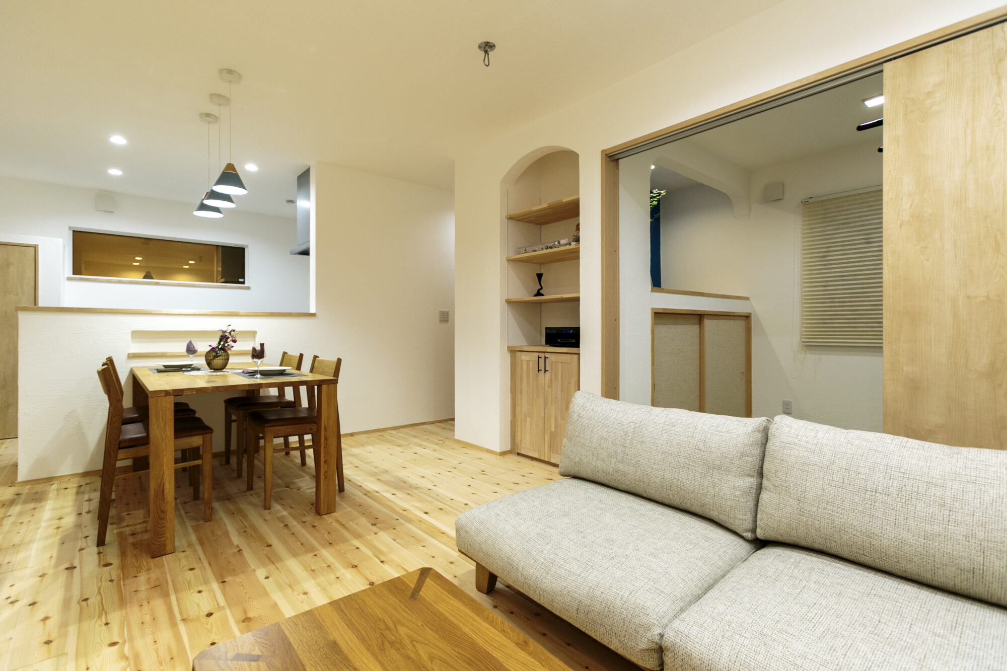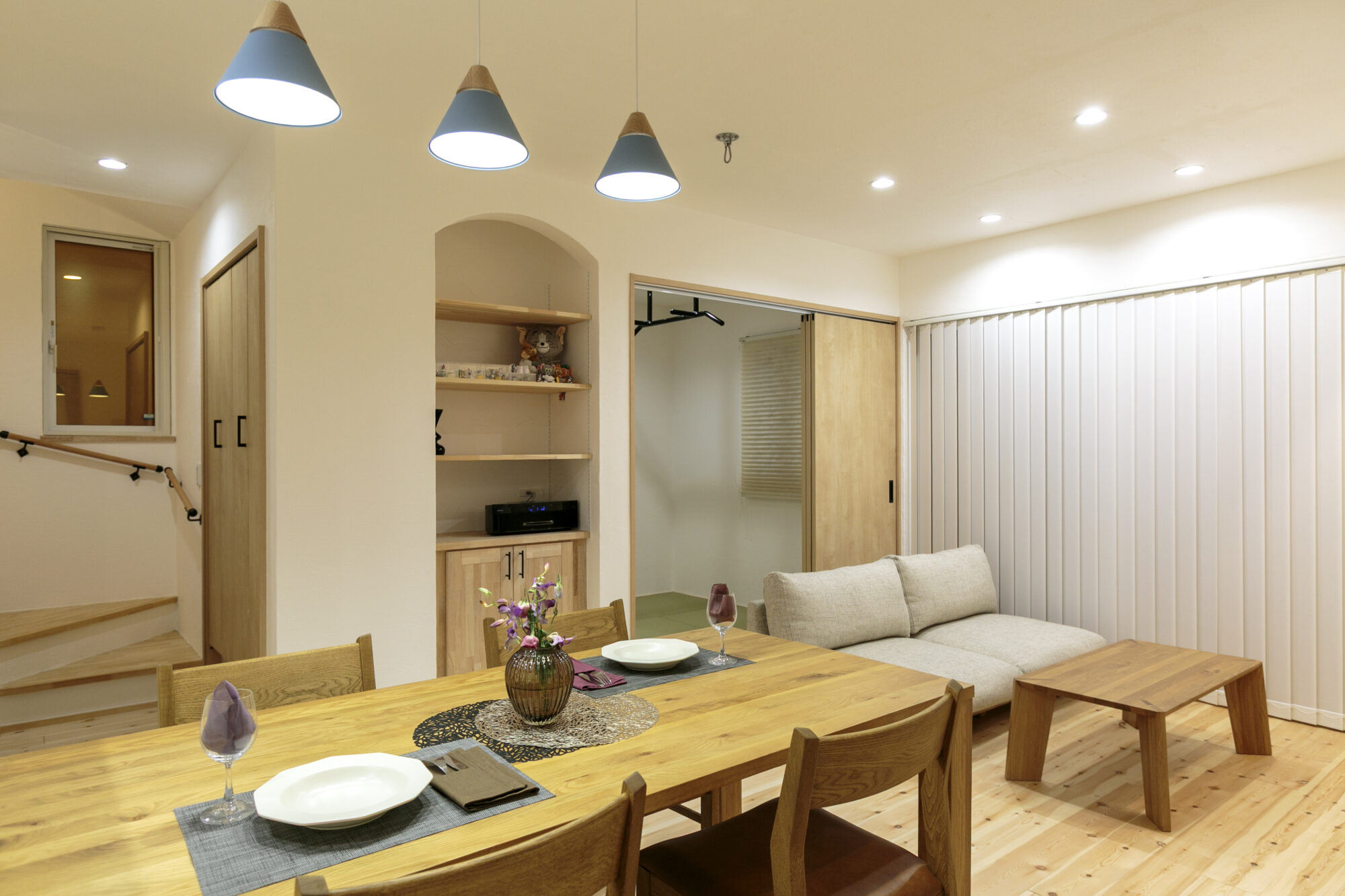 一生に一度のお家づくり。すべての動線を妥協したくない!それぞれの趣味もしっかり取り入れたい。趣味と暮らしを融合したオーダーメイドなお家です。天然石や色漆喰をアクセントにし、各所にこだわりが光ります。筋トレ用の懸垂棒、コレクションの飾り棚、非日常を味わえるハンモック・・・。やりたい!を我慢せずに詰め込みました。